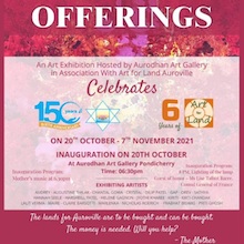 An Art Exhibition Hosted by Aurodhan Art Gallery in Association with Art for Land Auroville Inauguration on 20th October, 6:30pm […]