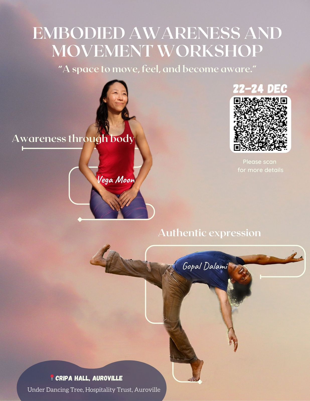 We are hosting a 3-day Embodied Awareness & Movement workshop in Auroville this 22–24 December, organised under Dancing Tree, Hospitality Trust.