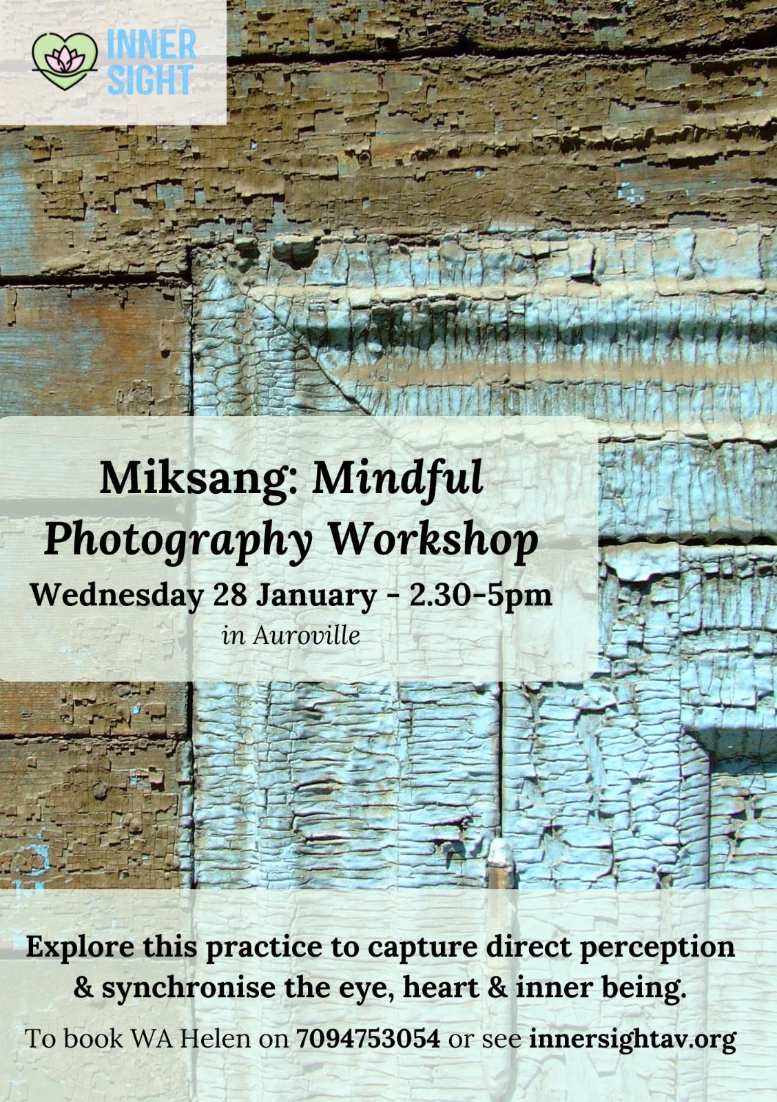 Booking required: WA Helen on 7094753054 or innersightav.org