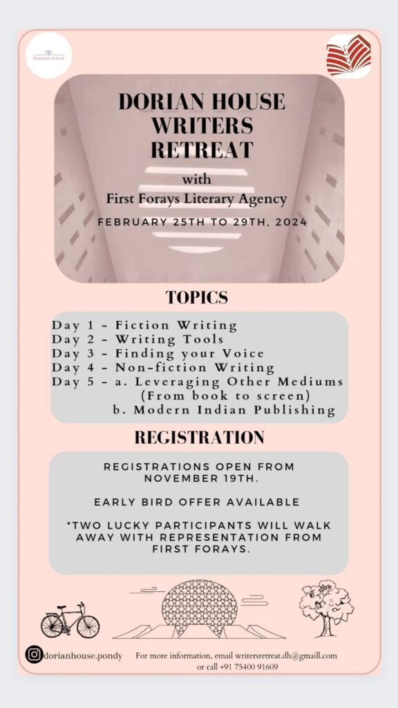 If these questions intrigue you, good! Because we have the answers. Hone your craft, attend seminars, learn from industry experts and, most importantly, write, during a five day retreat at Dorian House, near Auroville, Pondicherry.