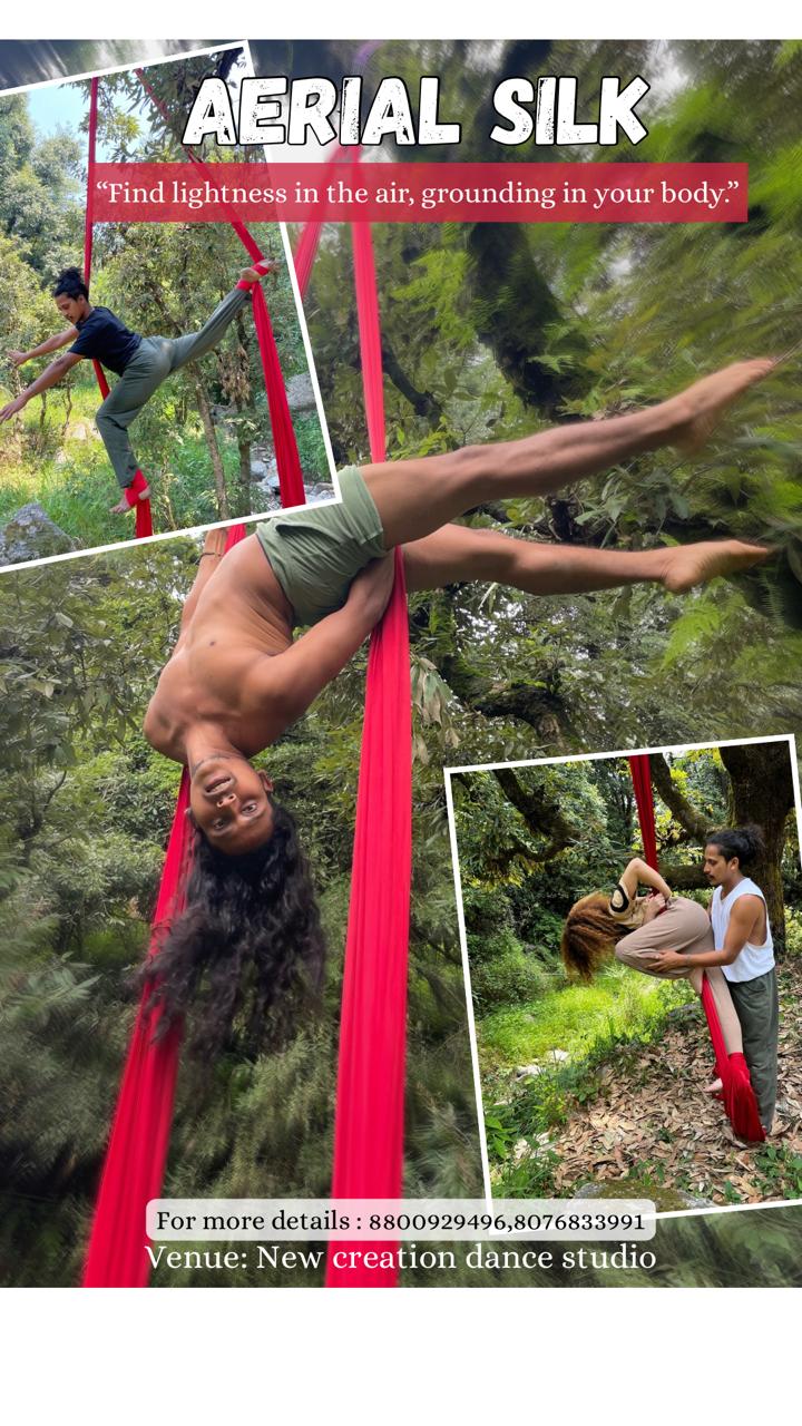 This workshop is for anyone who wants to feel stronger, more flexible, and more connected to their body, all while suspended in the air. Using the support of aerial silks, we’ll focus on full-body movement that builds strength, enhances mobility, and invites lightness and play.