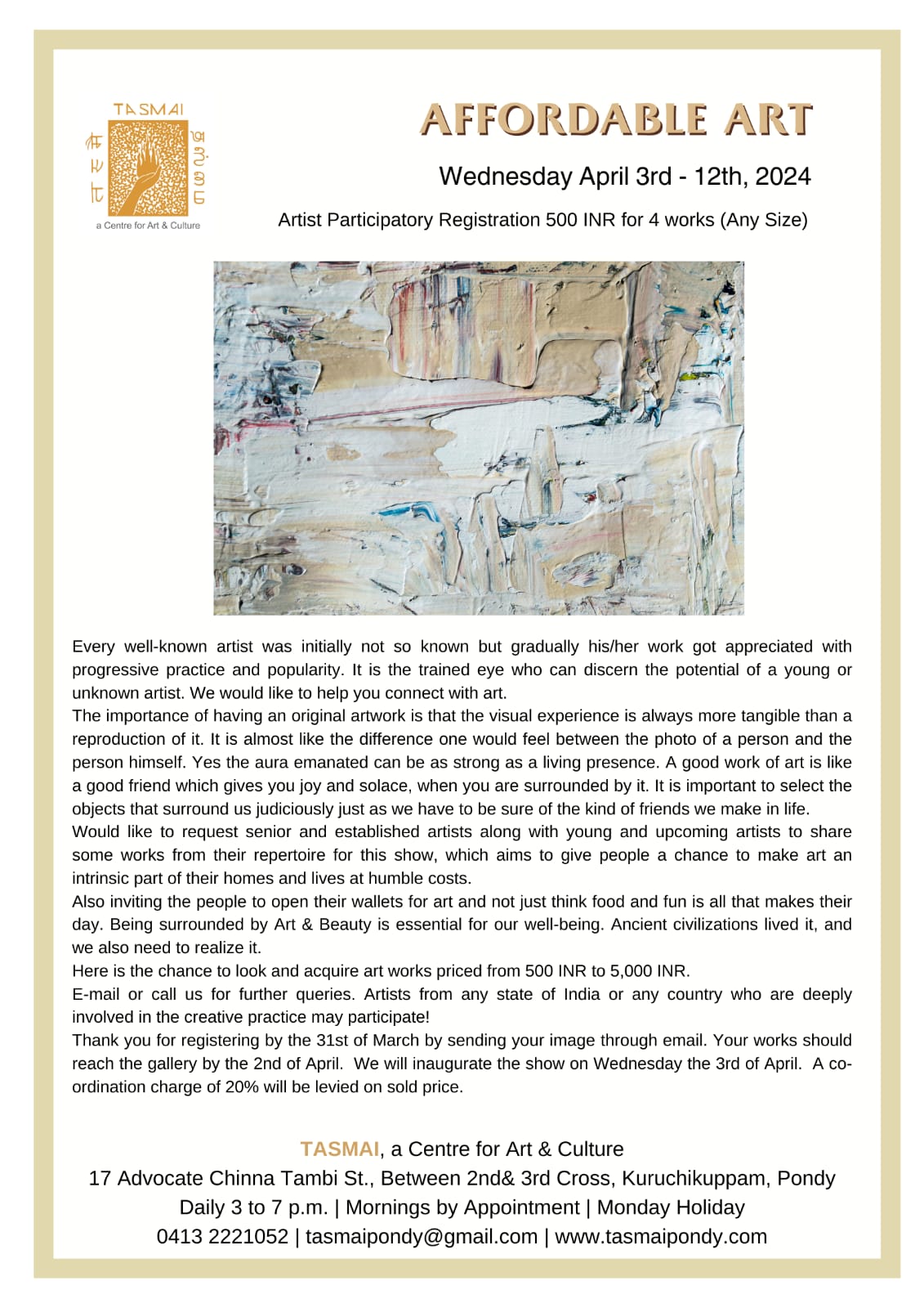 Artist Participatory Registration 500 IN for 4 works (Any Size)