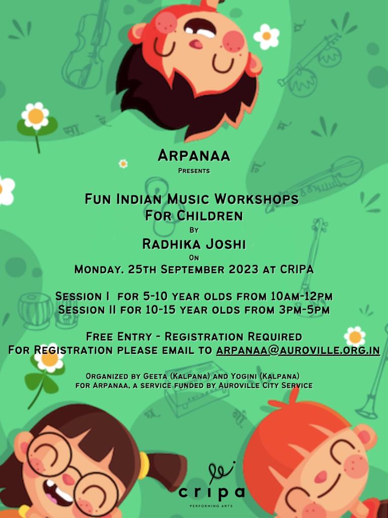 Arpanaa is happy to host A Fun Indian Music Workshop for Children by talented young vocalist Radhika on Monday 25th September.