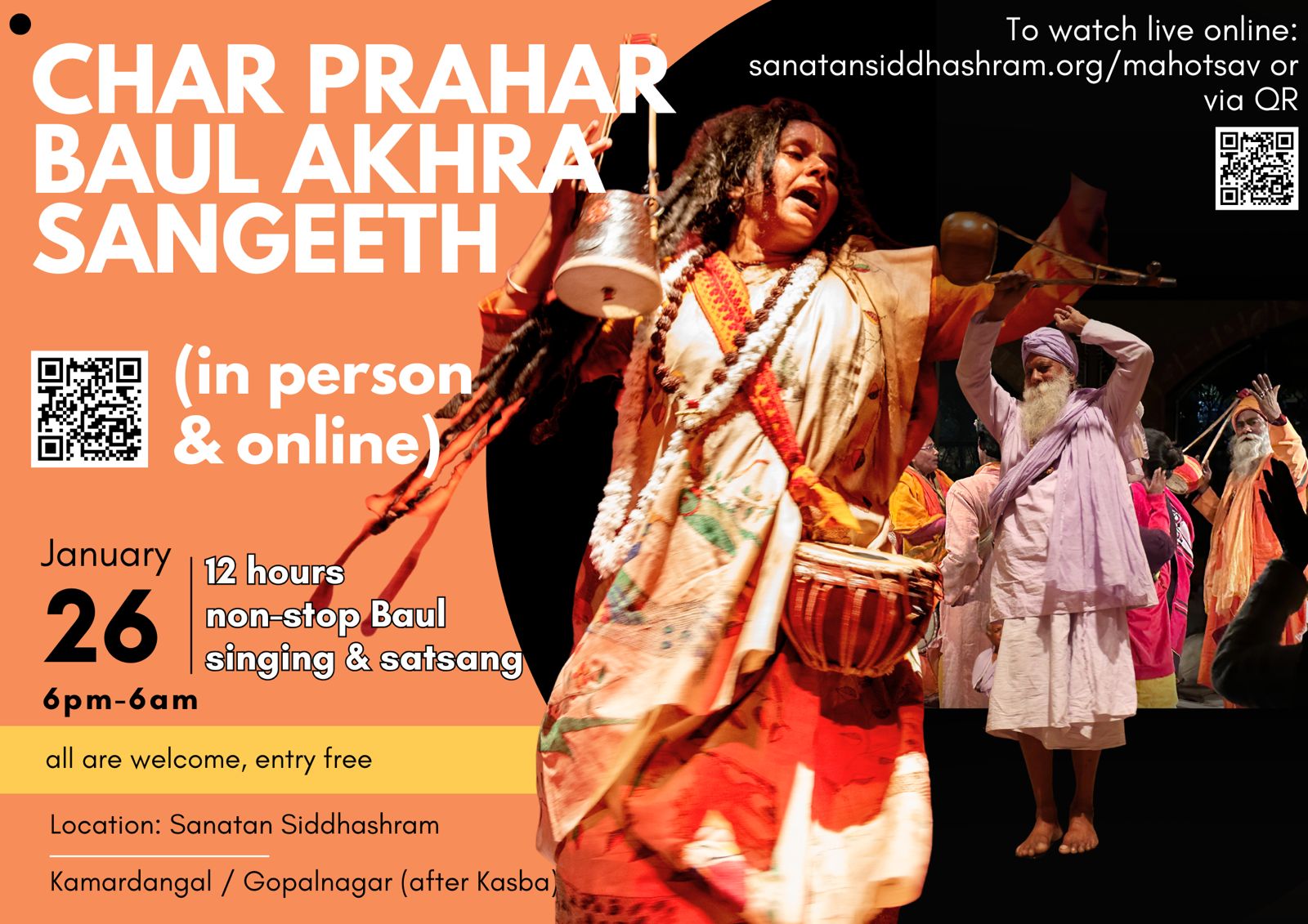 Duration: 12 hours of non-stop Baul singing & satsang