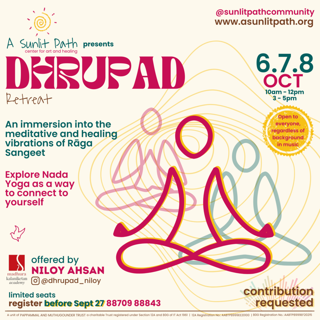 Join us for a transformative 3-Day Dhrupad Retreat at A Sunlit Path from October 6th to 8th, 2023, guided by Niloy Ahsan.