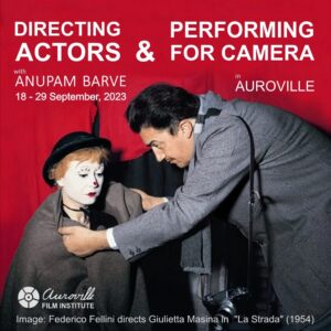 Led by Anupam Barve 18-29 September 2023, Auroville Focusing on Actors & Camera Techniques Hosted by Auroville Film Institute Featured Image: Federico Fellini directs Giulietta Masina in “La Strada” (1954)