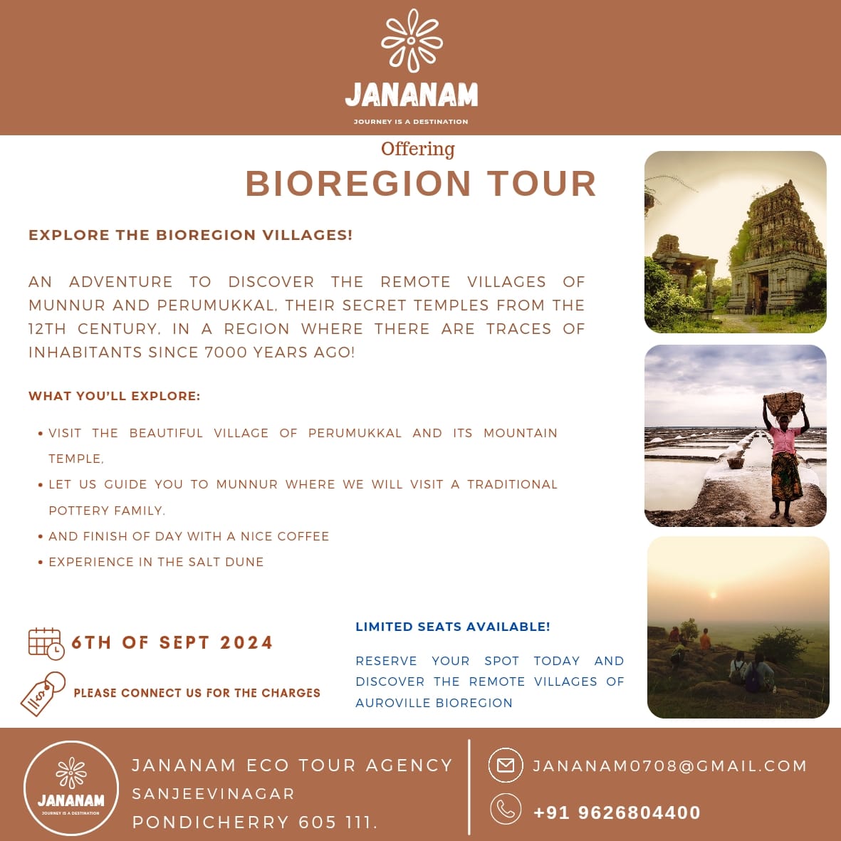 “Explore the bioregion villages! 🌄 Discover the ancient secrets of Munnur and Perumukkal, with temples from the 12th century and traces of human history dating back 7000 years! 🏛️✨ #AurovilleBioregion #AncientAdventures”