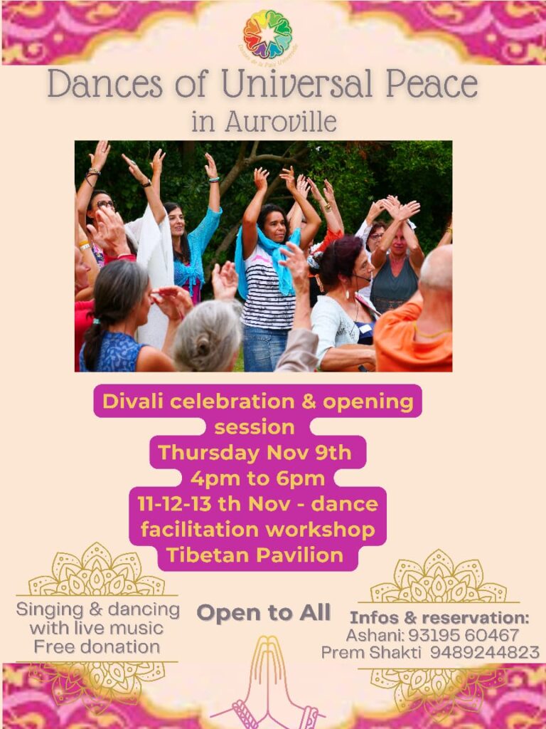 We have an amazing mentor of Dances of universal peace Ashani coming to Auroville to take us on the deeper journey of the healing, transformational and reuniting power of this Integral Art! We will have couple of open sessions with her in the afternoons and dance leaders training in the mornings for those who want to share the dances in their communities or schools. Let me know if you are interested. You can register with me 💚 Prem Shakti