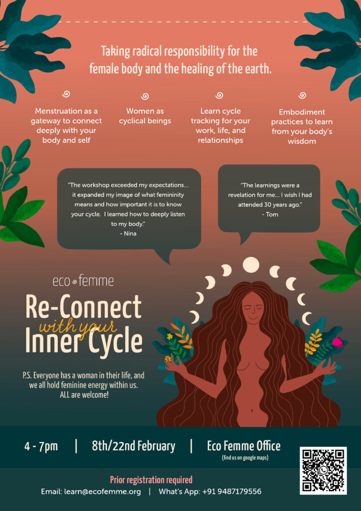 In one week, Feb 22nd at Eco Femme in Auroville 🩸We are all touched by those who bleed, regardless of our gender. ALL are welcome. ✨ Spots fill up quickly! Please register prior by filling out this form: https://forms.gle/KJ85p3LDsTm6SnKW9 or messaging: +91 9487179556 on WhatsApp