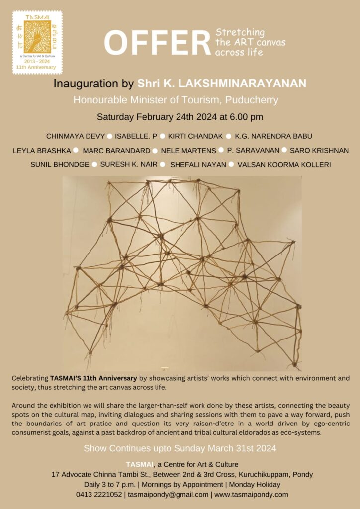 - TASMAI, a Centre for Art & Culture 17 Advocate China Tambi St., Between 2nd & 3rd Cross, Kuruchikuppam, Pondy