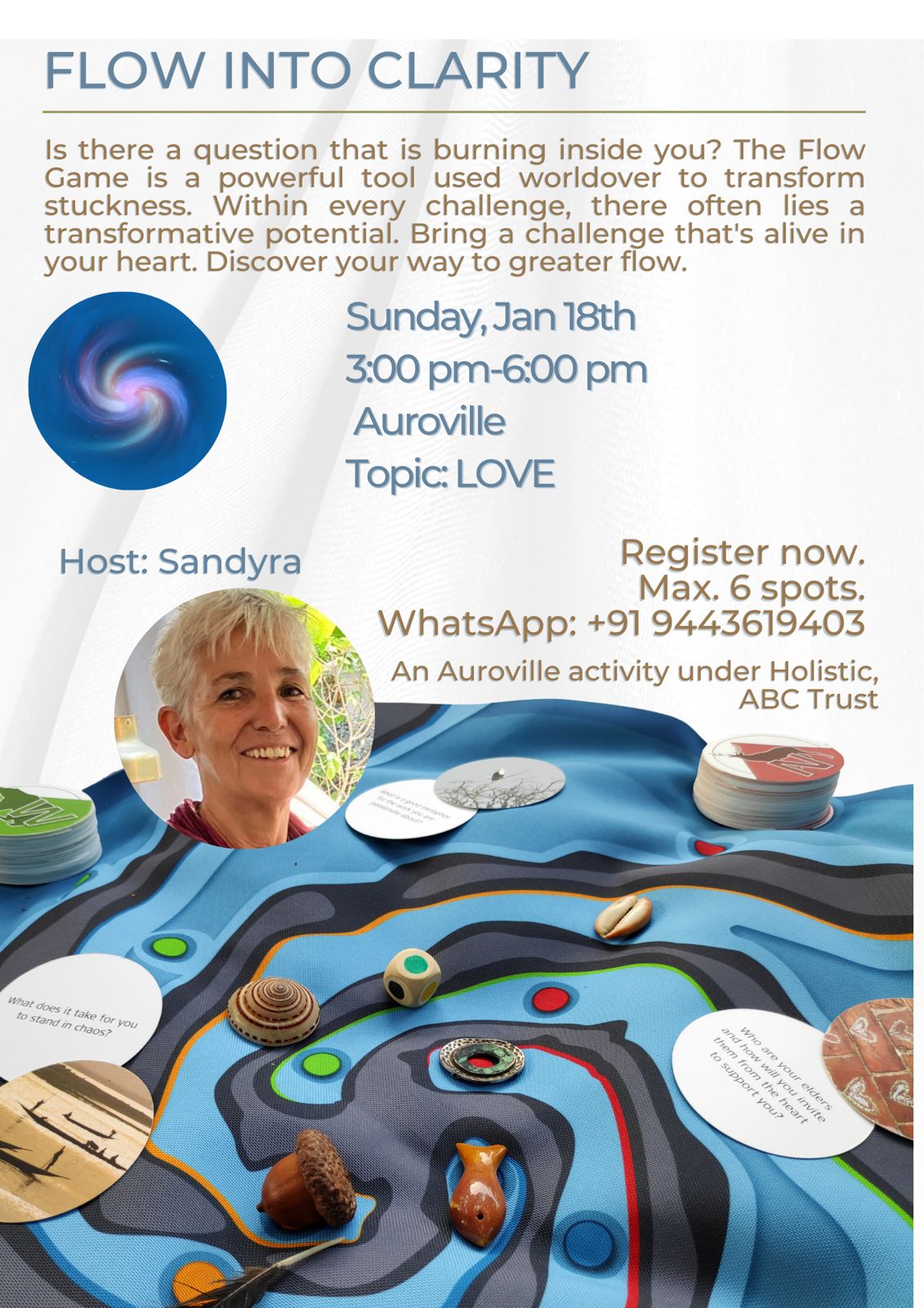 Is there a question that is burning inside you? The Flow Game is a powerful tool used worldover to transform stuckness. Within every challenge, there often lies a transformative potential. Bring a challenge that’s alive in your heart. Discover your way to greater flow.