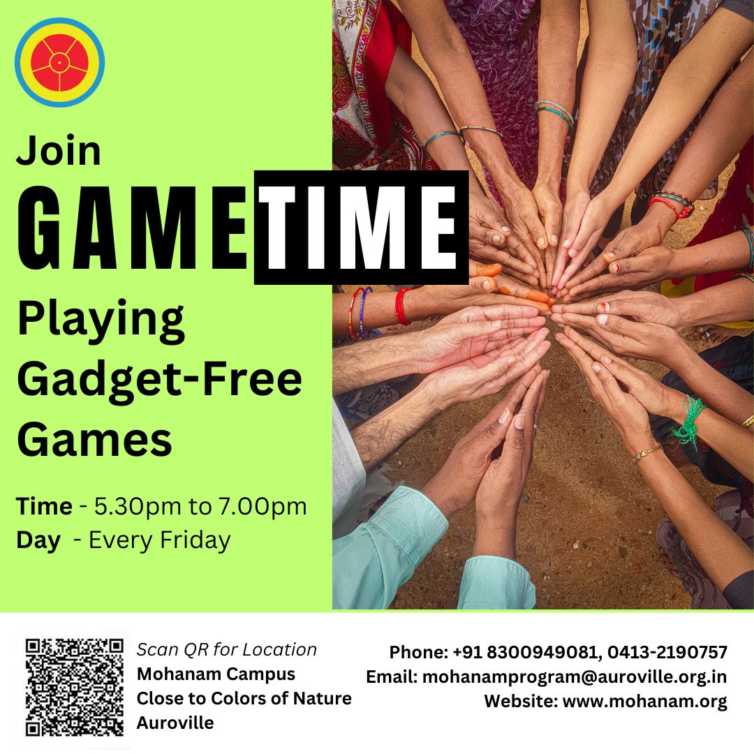 Game Time is FREE and open to all including volunteers, aurovillians, newscomers and guests.
