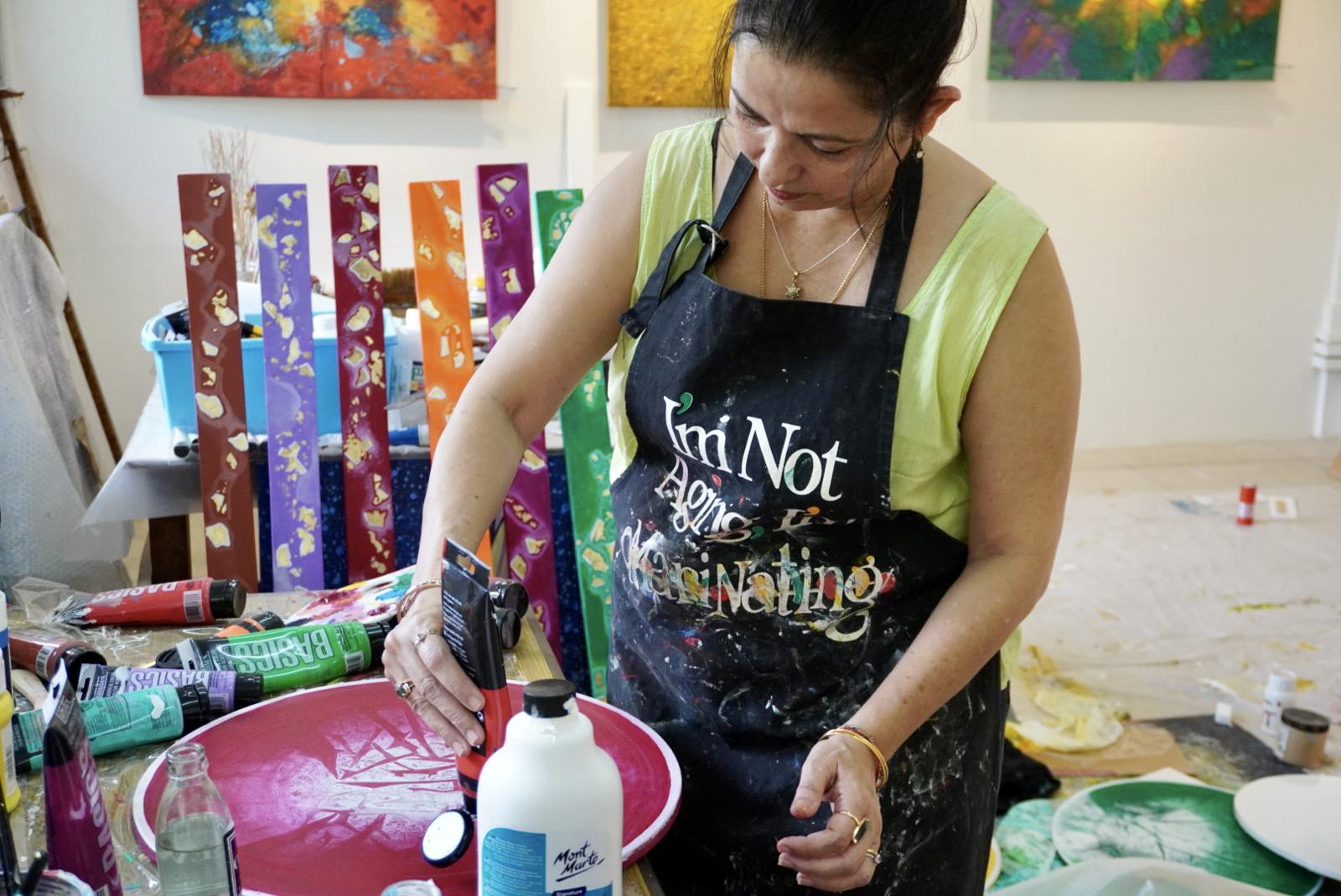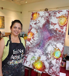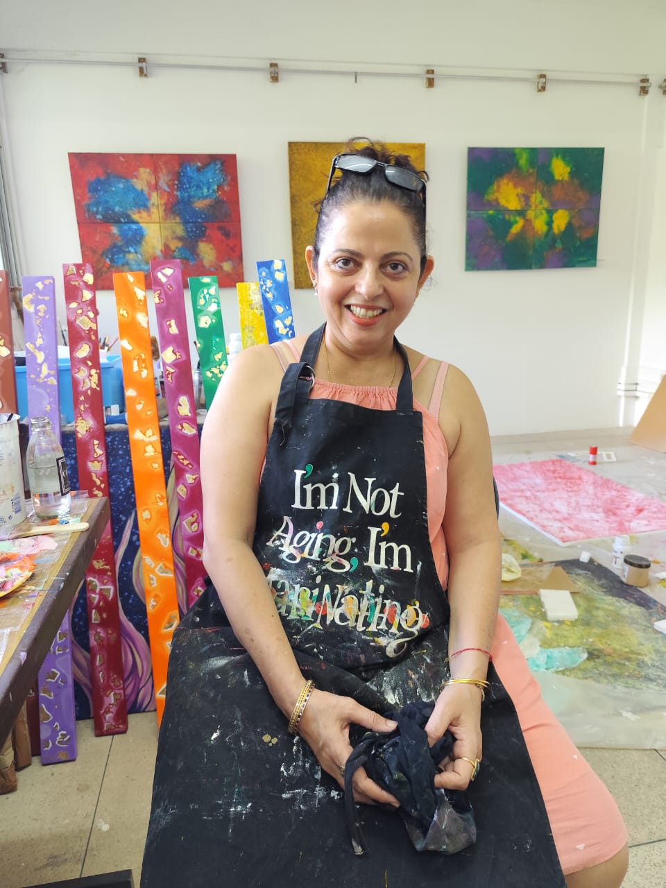 Hufreesh Dumasia is an intuitive abstract artist. She has been painting ever since she was old enough to hold a brush. To become an artist wasn’t a conscious choice, but a natural expression of her being. Growing up in Sri Aurobindo Centre of International education in South of India and then later joining the Universal city of Auroville, which is an experiment in Human Unity, her being naturally turned inward instead of outward to find its true expression. And painting was that medium to express the hidden world within.