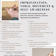 A creative, experiential space to explore aspects of embodied experience, expression, and self-awareness through voice, movement, and improvisation.