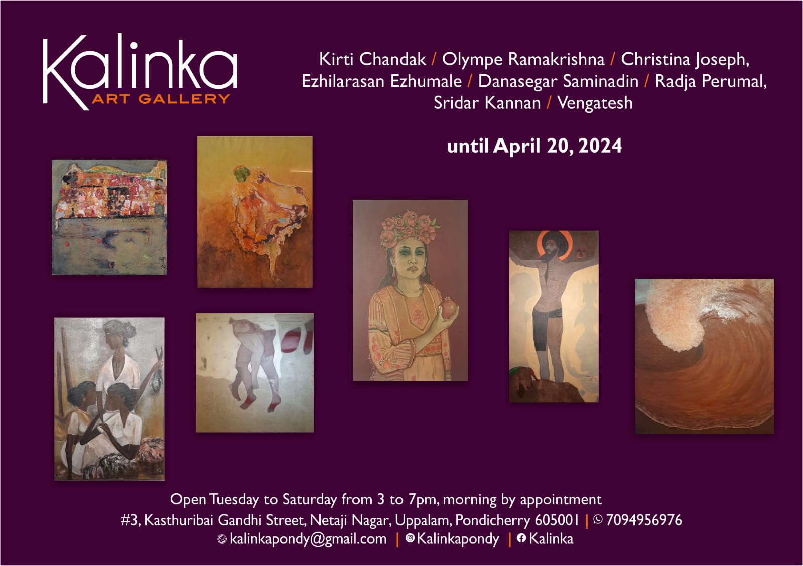Last week to visit this collective exhibition of oil paintings by some of the best artists of Pondicherry. Open until Saturday from 3 to 7pm. 3 Kasthuribai Gandhi street in Uppalam, just before the Volontariat.