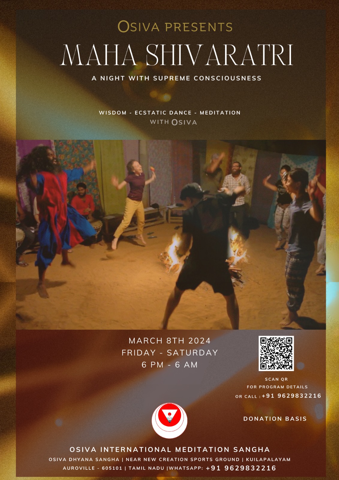 Event Details: ‘Maha Shivaratri – A Night with Supreme Consciousness’ presented by Osiva, featuring wisdom talks, ecstatic dance, and meditation sessions