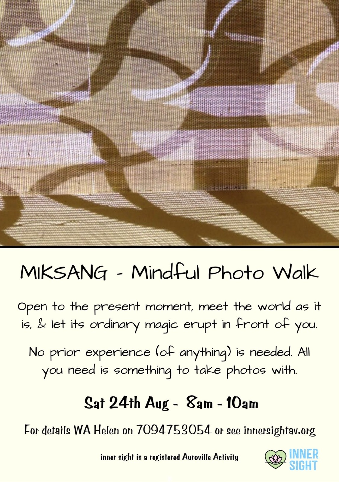 Miksang is a form of contemplative, mindful photography. The focus is not on technique, but on discovering a moment of fresh, direct perception where the world stops us out of the blue and wakes us up to something deep and true.