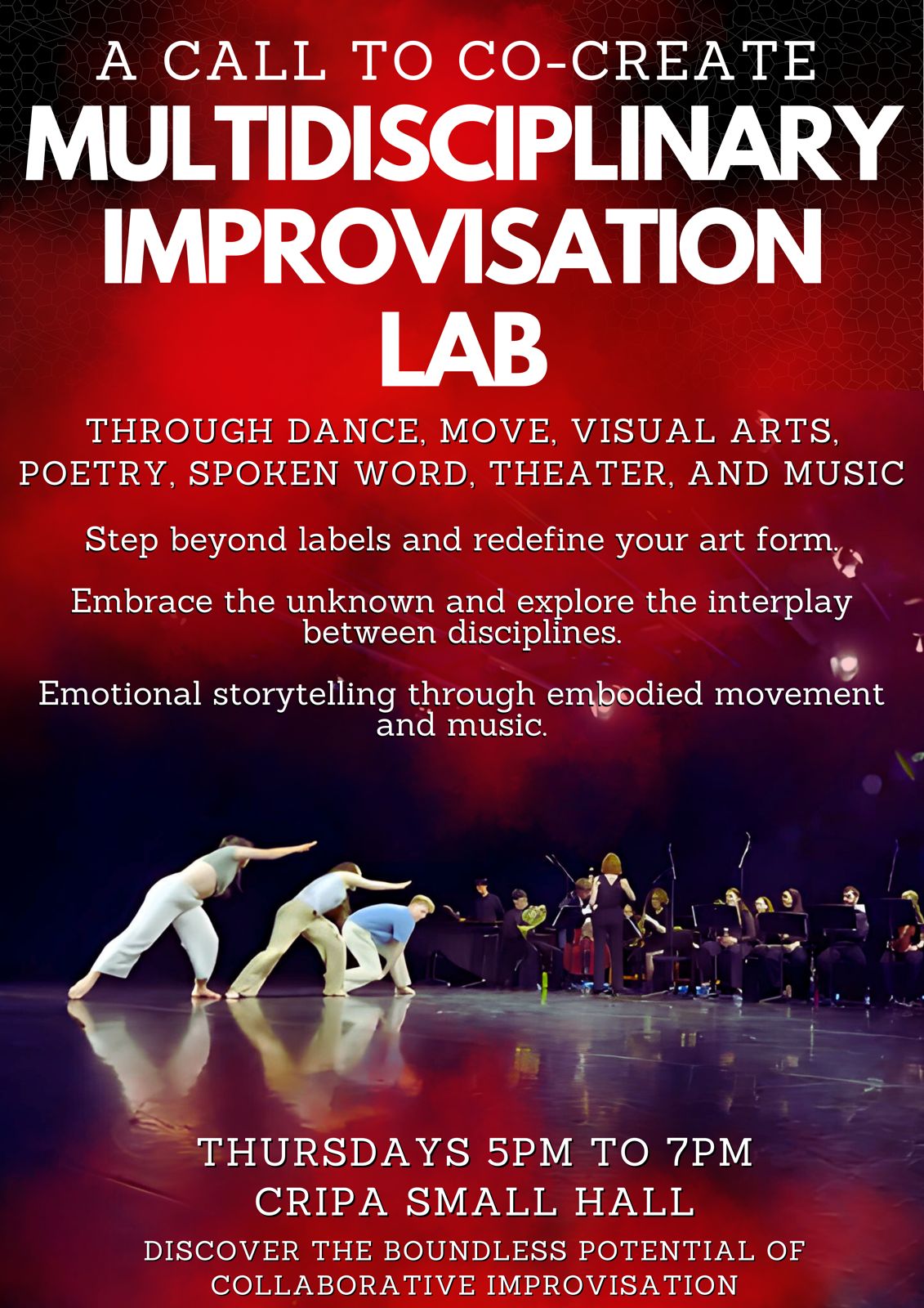 through dance, move, visual arts, poetry, spoken word, theater, and music