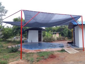 European House wants to offer a platform for Auroville artists of any nationality to decorate one or two of the outside walls of their building. Interested artists may drop by to take a look at the walls at any time. All walls are to be painted except the front walls with the door.