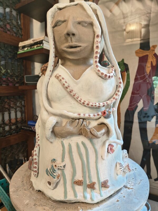 Osiva’s paintings are joyful and evoke images of a dreamy, carefree world full of colors and light. Vibrant strokes of his paintings reflect his inner freedom. He shares his love for art with the local children.