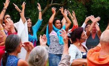 Dances of Universal Peace combines simple dance steps with sacred songs from around the world. By donation