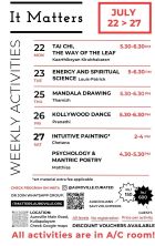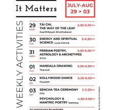 Calendar for Weekly Activities Tai Chi : Monday, 29 July 2024, 5:30-6:30 pm by Kaarthikeyan Energy and Spritual Science: Tuesday, […]