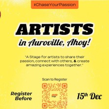 Date: August 31 Time: 4:00 PM – 5:30 PM Location: Cripa, Auroville Registration: Phone: +91 8484935911 Email: aurovilleartworld@gmail.com