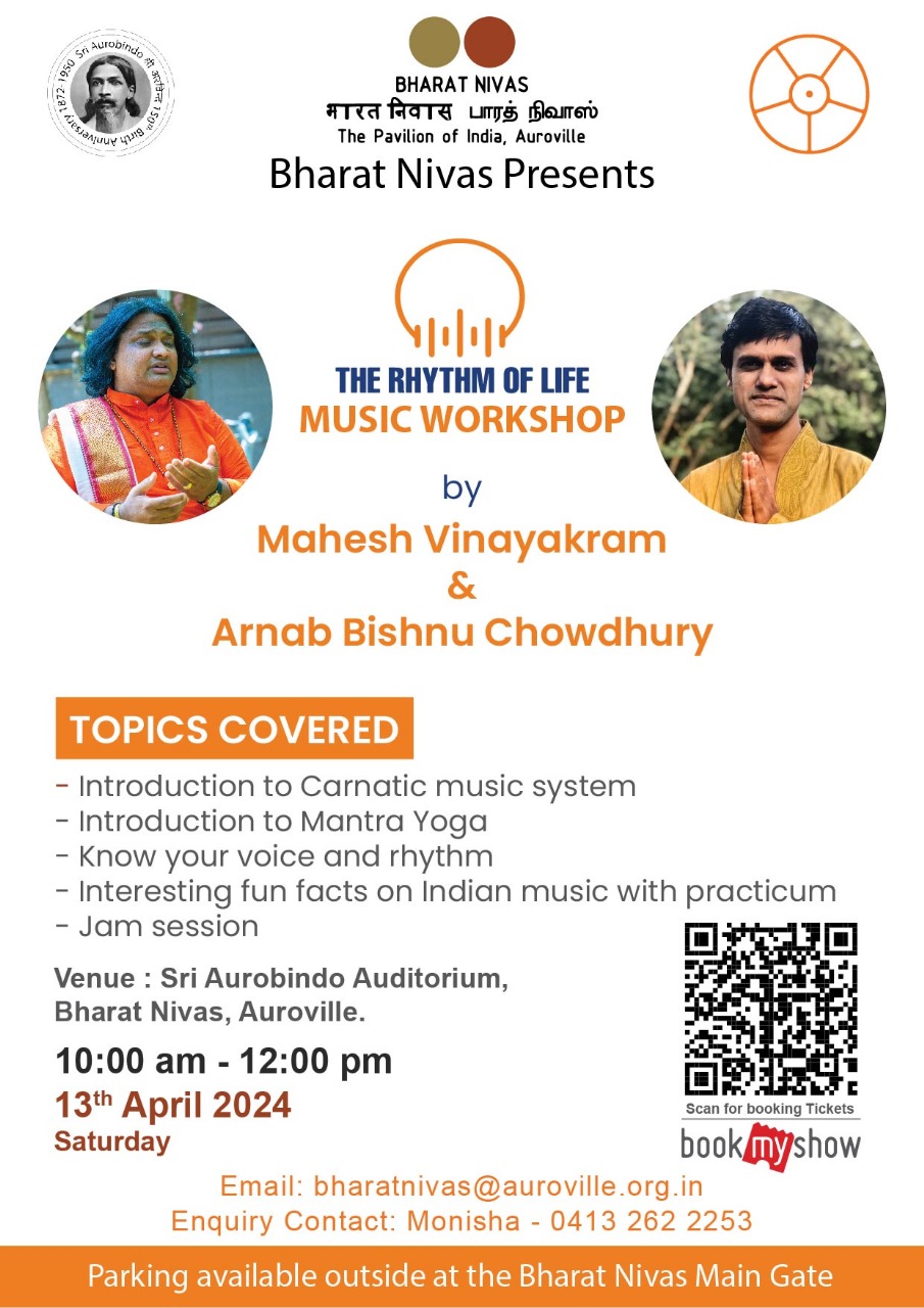 - Venue: Sri Aurobindo Auditorium, Bharat Nivas, Auroville.