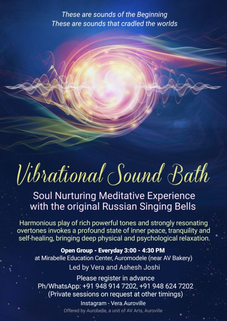 Event Description: Vibrational Sound Bath – Soul Nurturing Meditative Experience with the original Russian Singing Bells. Harmonious play of rich powerful tones and strongly resonating overtones.