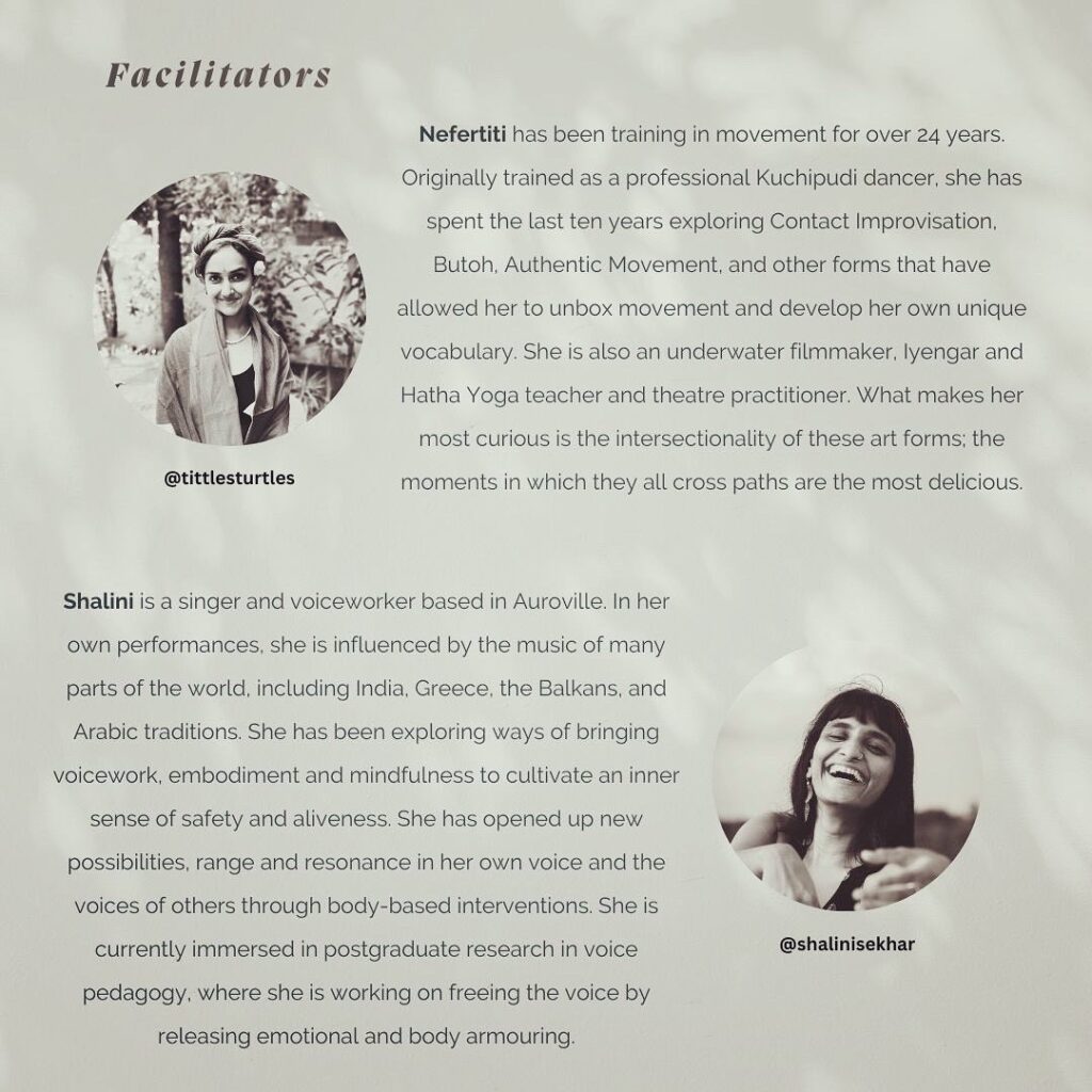 The intention of this workshop/retreat is to deepen the journey of embodiment through voice and movement practices. This space is for everyone, whether you are an experienced mover or voice-user, or have never dabbled in anything like this before.
