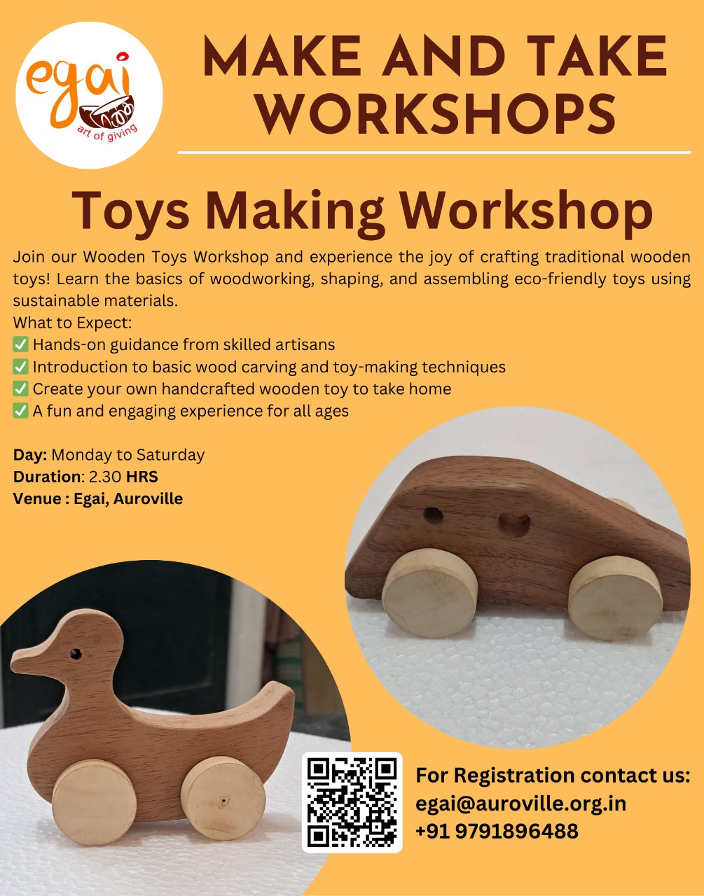 Join us for an engaging Wooden Toy Making Workshop, where you’ll learn to shape, carve, and assemble your very own eco-friendly wooden toys. 🧸🛠️